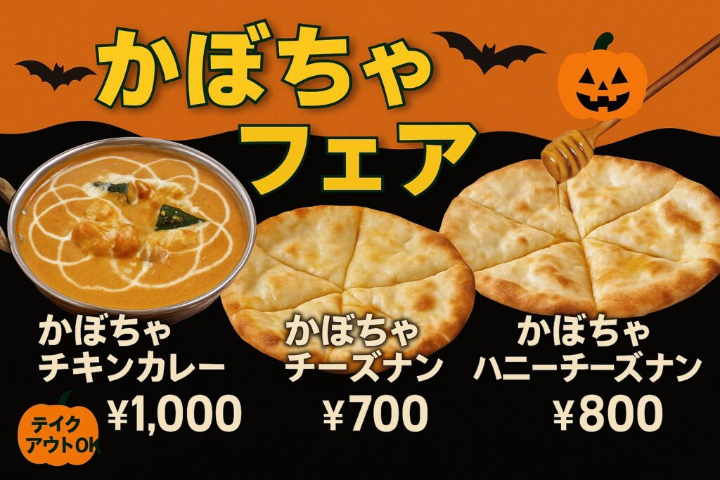 かぼちゃカレー、かぼちゃチーズナン、かぼちゃハニーチーズナン